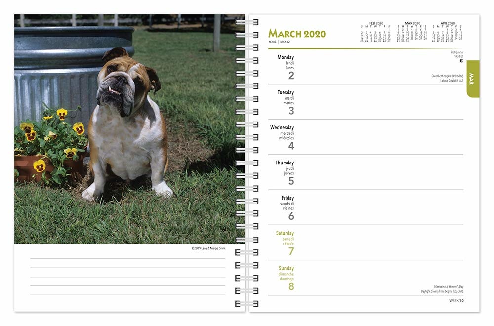 Ihr Ausdruck mag mürrisch aber Englisch Bulldogs auch genannt Bull Hunde sind locker und sanft. Die Kinder sind perfekte Begleiter, und sie haben eine außergewöhnliche Affinität zu anderen Hunden. Mit ihrem faltigen Gesicht, dem typischen Wackeln und einem großen Herzen, sind sicherlich charmante kleine Zeichen. Lassen Sie die tapferen Bulldogs in dieser Agenda werden Sie durch das ganze Jahr führen.