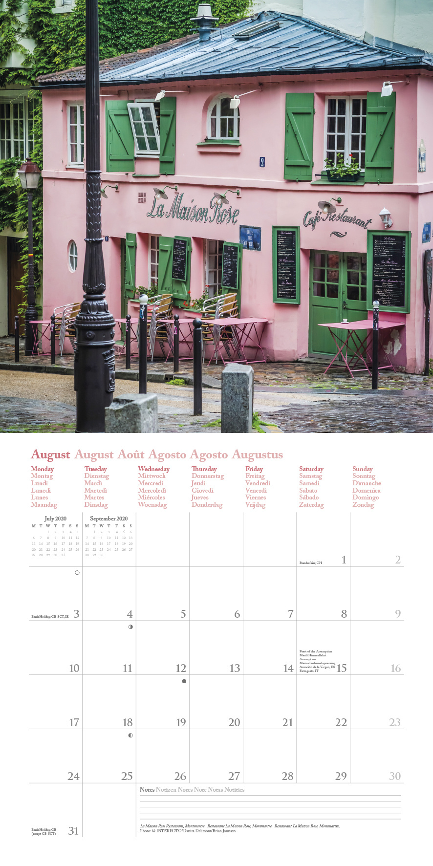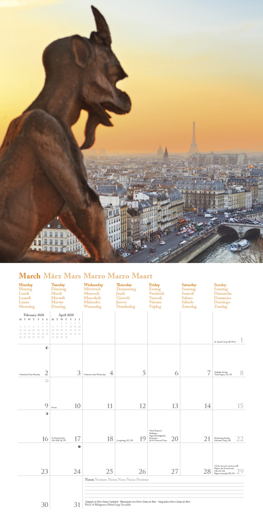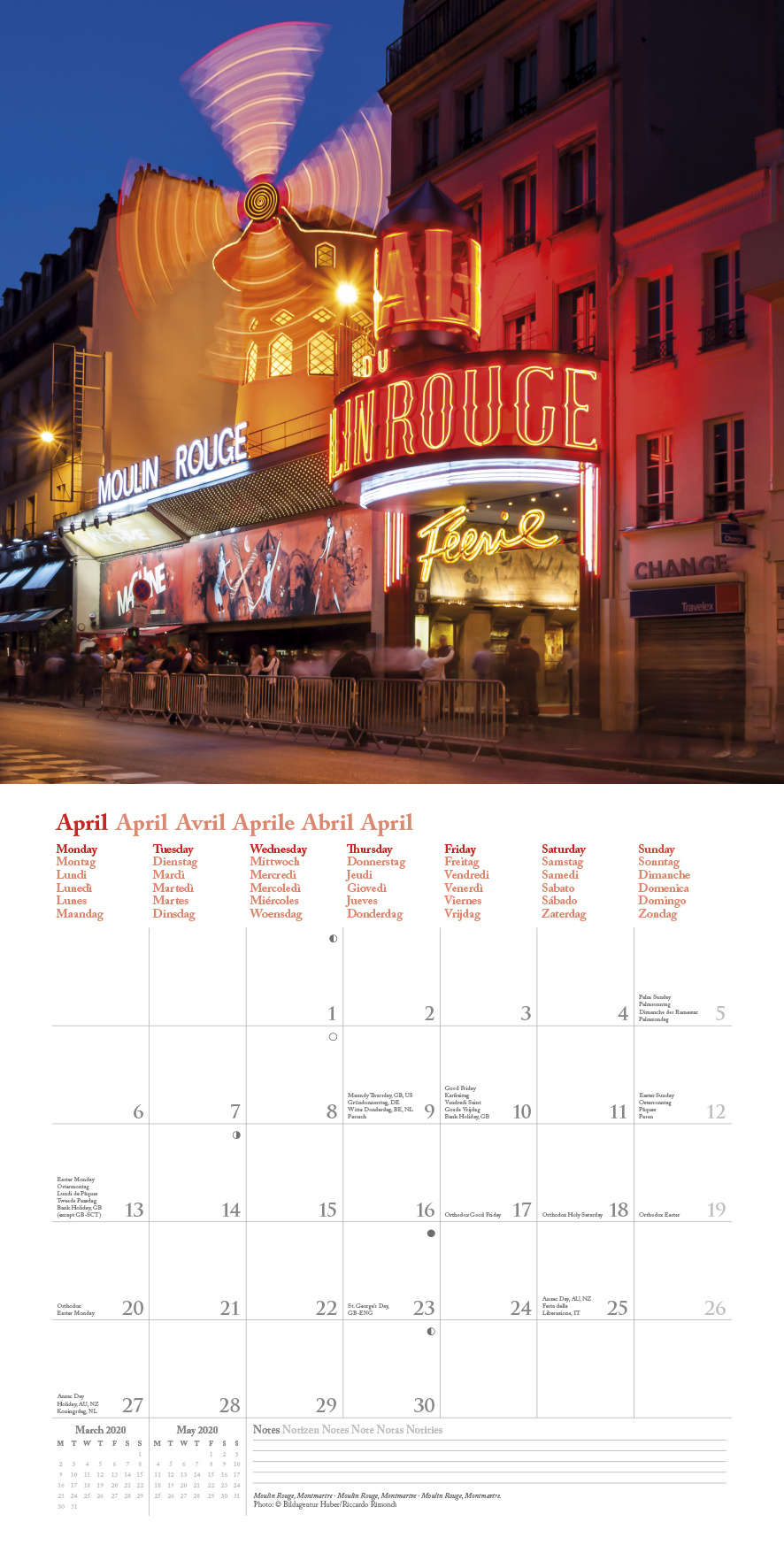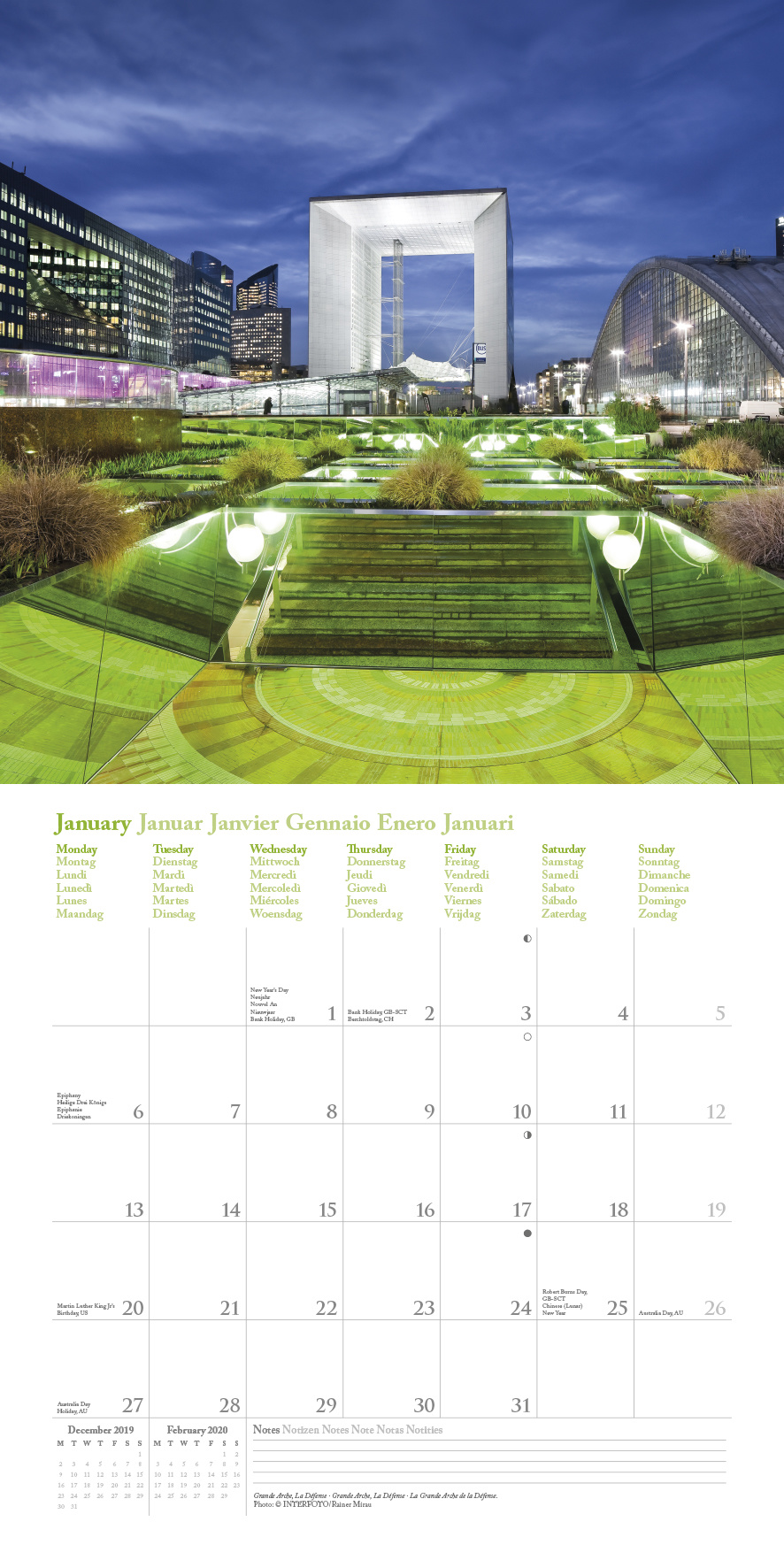 Die internationale und mehrsprachige (Englisch, Deutsch, Französisch, Italienisch, Spanisch, Niederländisch) Fotografie Kalender teNeues sind mit 12 schönen Bildern auf Hochglanzpapier und mit klaren Zeitplänen und Texten ausgestattet. Die 30 x 30 cm Wandkalender gefaltet 30 x 60 cm, die Namen der Tage und Monate in mehreren Sprachen gibt. Eine Reihe von Urlaub und Ferien sind in den Gittern des Monats gedruckt und es gibt Raum für Ihre täglichen Aufgaben und Termine.