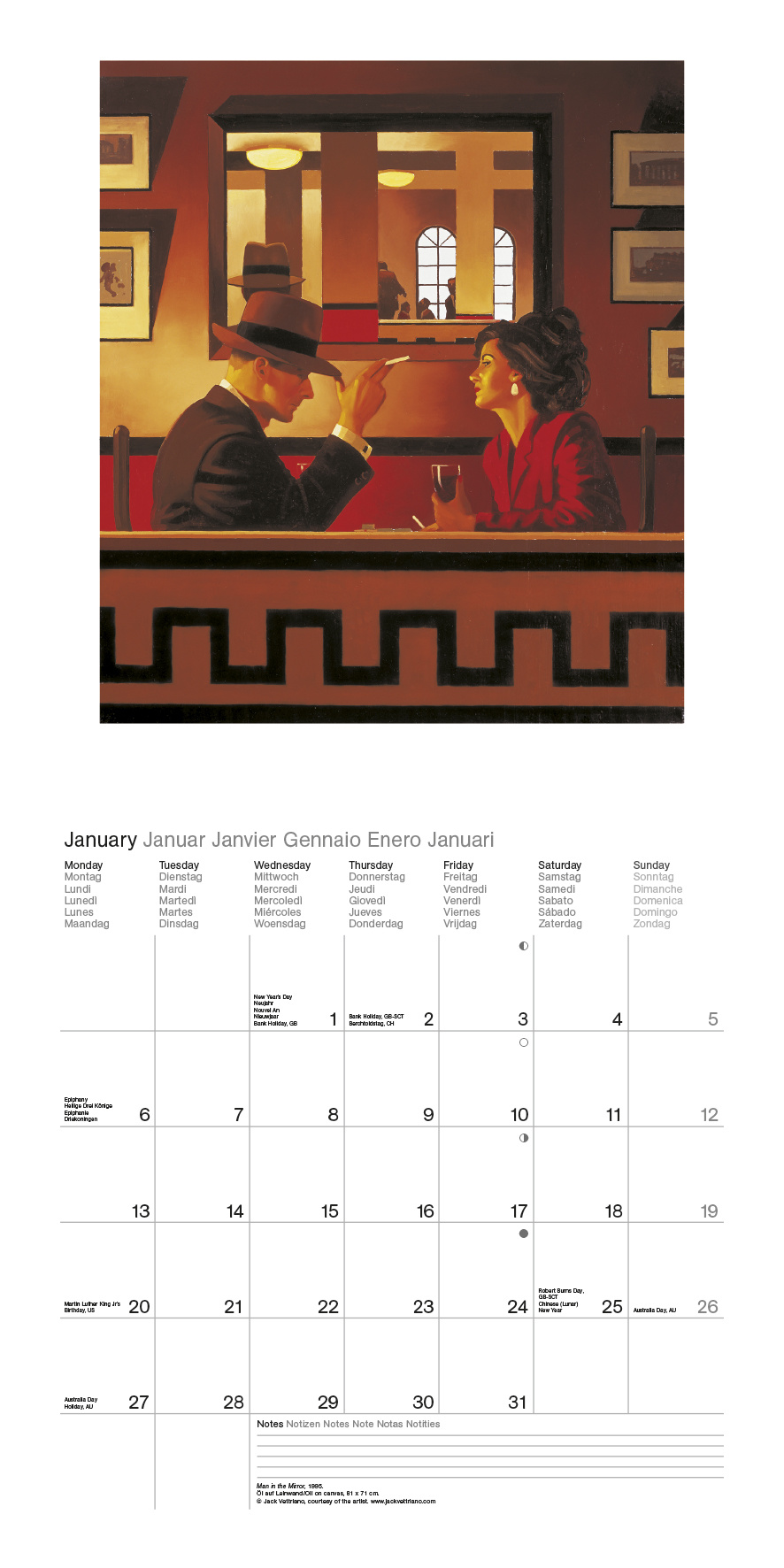 Zijn karakteristieke stijl komt ook tot uiting in deze mini kalender. Hier vindt u twaalf prachtige landschappen die doen denken aan films uit de jaren 1930 en 1940.