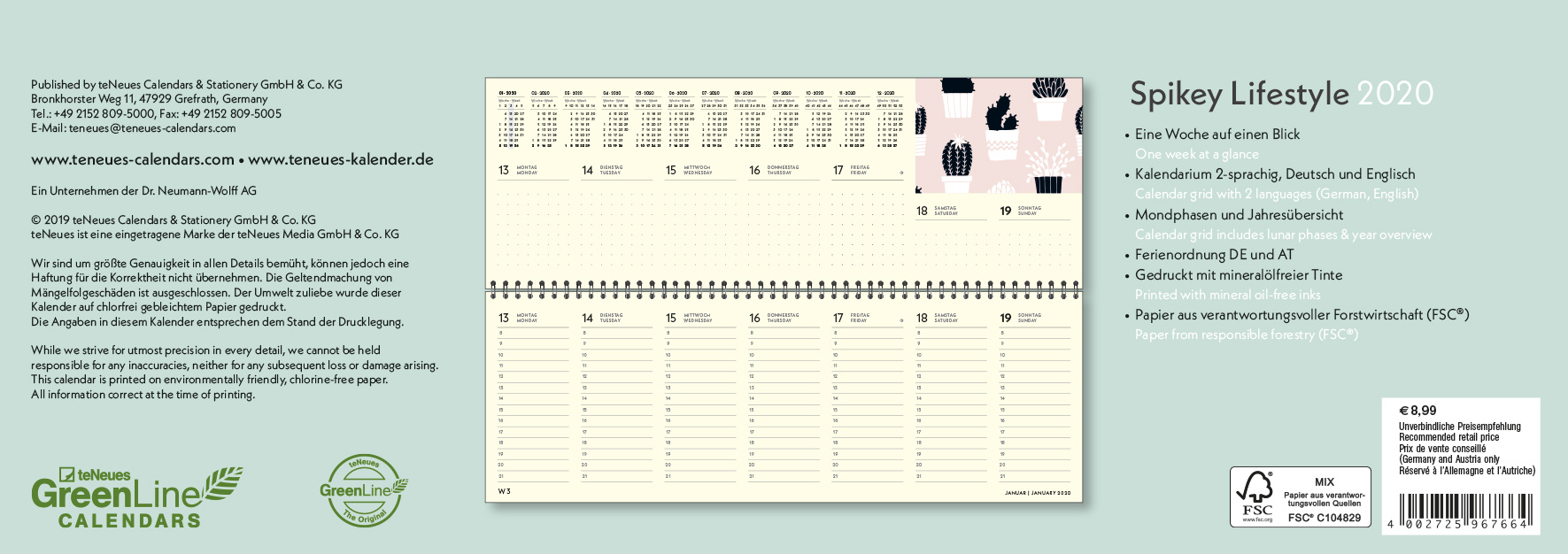 Spikey Lifestyle Greenline Desk Kalender 2020